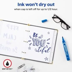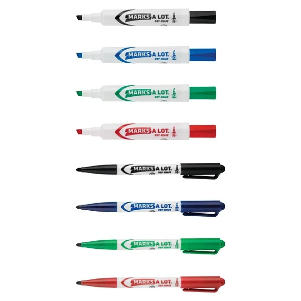 Present notes and ideas with rich, bold color. Marks-A-Lot Dry Erase Markers help you convey your thoughts on whiteboards, glass and other nonporous surfaces, and the ink erases smoothly to let you start anew. Color code whiteboards, laminated calendars, transparencies and more with vivid green, blue, red and black ink. A low-odor, nontoxic, certified formula makes the markers safe for both adults and children to communicate ideas at home, work or school. With these clever, long-lasting markers, your new ideas come to vibrant life.