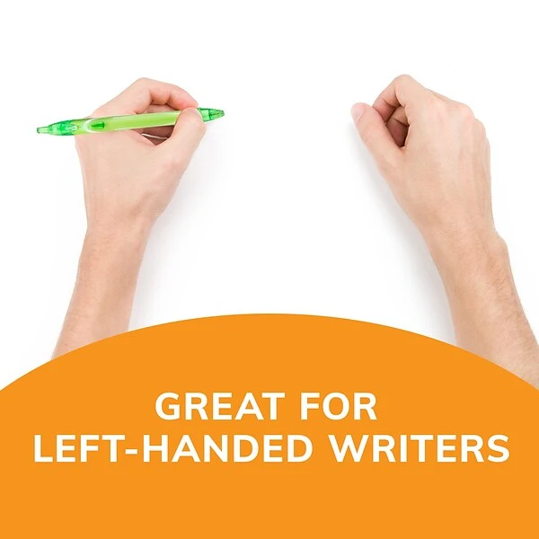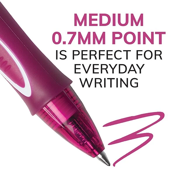 Enjoy a colorful writing experience with the super-smooth ink of BIC Gel-ocity Quick Dry Fashion Gel Pens. These 0.7mm medium point gel pens leave clear, vivid lines and minimize smearing as their easy-flowing ink dries up to three times faster*. The full-length round barrel provides precise pen control and a comfortable grip, so you can keep writing. The retractable design allows for simple, one-click tip advancement, making it easy to make a stylish impact during your everyday writing activities. With the plastic clip, these colorful, smooth writing pens attach securely to notebooks or pockets to keep them within easy reach. Gel-ocity Quick Dry Fashion pens are the perfect colored gel pens for note taking, journaling or annotating — an ideal choice when the time comes to restock school or office supplies. This pack of gel pens contains one pen in each of the following vibrant colors: Pink, Magenta, Purple, Teal, Lime Green, Blue, Orange, and Light Orange. Find the right color to match your style with this pack of BIC Gel-ocity Quick Dry Fashion Retractable Gel Pens. *Vs. BIC Gel-ocity original based on average dry times of blue, black and red. Individual dry times may vary by color.