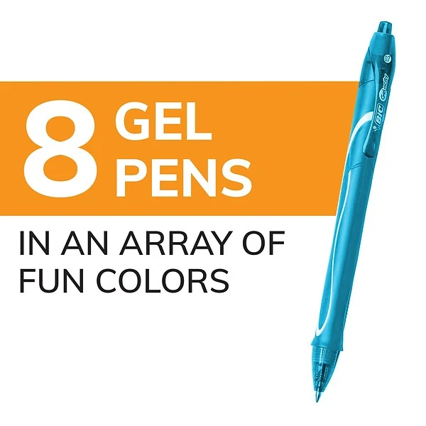 - One 8-count pack of BIC Gel-ocity Quick Dry Fashion gel ink pens