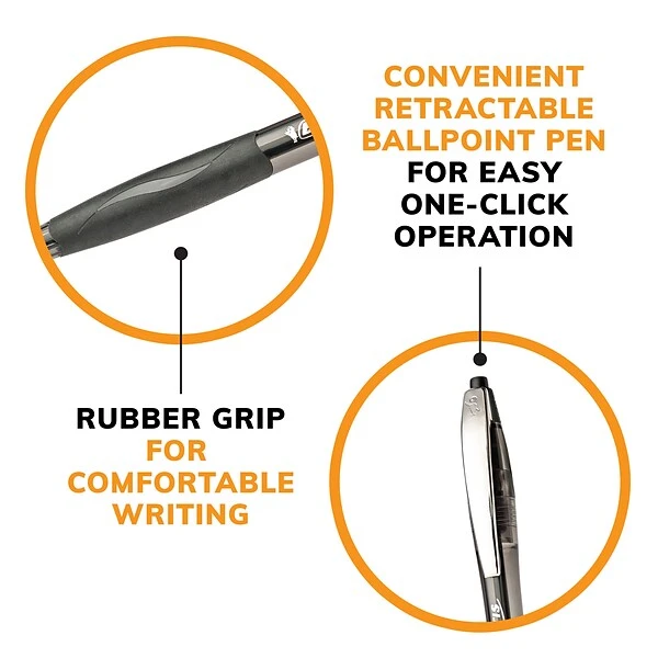 The trusted original with a classic look and feel, BIC Glide Retractable Ball Pens (formerly BIC Atlantis Ball Pens) offer fluid, effortless writing for everyday writing tasks. The Glide is BIC’s #1 selling retractable ball pen and comes filled with ink that writes even smoother than BIC classic ink system. Each pen features a rubber grip that offers a comfortable hold-ideal for longer writing sessions-and a 1.0mm medium point that is versatile enough for a variety of writing activities. The pen’s smooth-click retractable design offers convenience, while the metal clip adds a touch of sophistication.