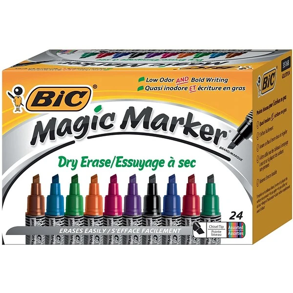 BIC Intensity Advanced Dry Erase Markers deliver both low odor AND bold writing. With their long-lasting supply of liquid ink, these tank-style markers provide smooth, consistent ink flow on whiteboards, glass, and most non-porous surfaces. These non-toxic markers also offer a visible ink supply, so you can easily check if you’re running low. The versatile chisel tip helps you switch seamlessly between bold, broad strokes and fine lines, and marks erase easily with a tissue or cloth. Available in a variety of bright, vivid colors, these dry erase markers are a great choice for home, school, or the office.