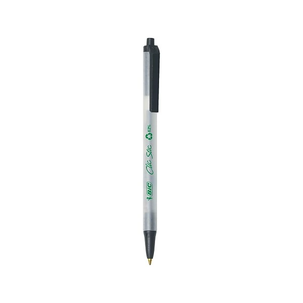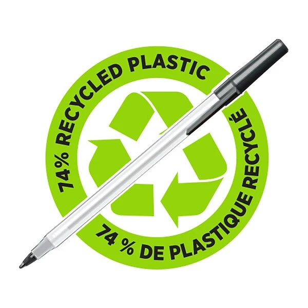 Made with 74% recycled plastic, the BIC ReVolution Round Stic ball pen combines performance and recycled plastic into one writing instrument. This environmentally friendly pen features a versatile 1.0mm medium point that is perfect for almost any writing task. The translucent barrel lets you see the remaining ink supply, and the flexible round barrel is comfortable in the hand, even after hours of writing.