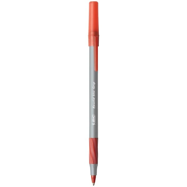 Create eye-grabbing edits, reminders, and other notes by using these red ballpoint pens. With 1.2mm medium-point tips, these pens deliver bold, thick lines, while the smooth-flowing ink provides fluid and controlled writing. These BIC Round Stic Grip Xtra Comfort ballpoint pens each have a rubberized grip for enhanced comfort when writing letters, manuscripts, and other lengthy projects.