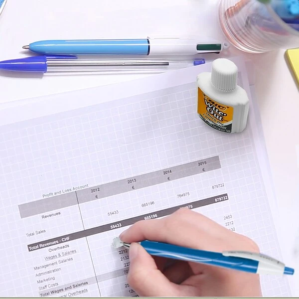 Each Wite-Out bottle comes in a convenient size with a protective screw-cap top. For added convenience, try BIC Wite-Out correction pens.