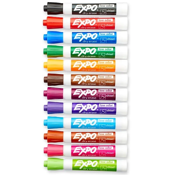 Capture attention with the bold, bright ink of Expo low odor dry-erase markers. These whiteboard markers offer a quick-drying formula that is virtually odor-free. The fine-point tips on these Expo dry-erase markers produce thin, legible lines. Each pack contains 16 low odor dry-erase markers in assorted colors.