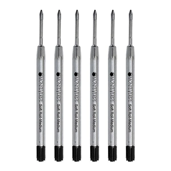 Monteverde® Soft roll™ Ballpoint refill in black for Parker® ballpoint pens features low viscosity ink for easy flow and has a large capacity metal body. Refill bears a nickel plated brass tube and a medium point Swiss tip, sold as 6 per pack.
