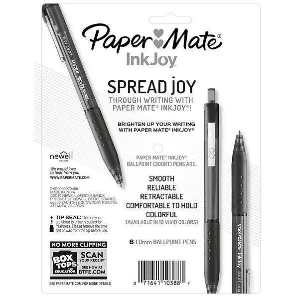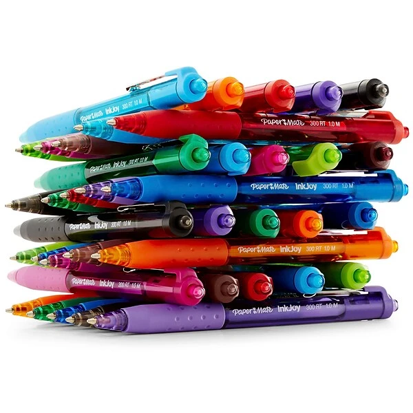 Paper Mate InkJoy 300 RT Ballpoint Pens start quickly without dragging. Paper Mate pens deliver crisp, clean lines every time. The InkJoy 300 RT ballpoint pen has a transparent, color-tinted barrel for monitoring ink supply. This stylish retractable ballpoint pen also features a metal clip to hold it securely in your pocket.