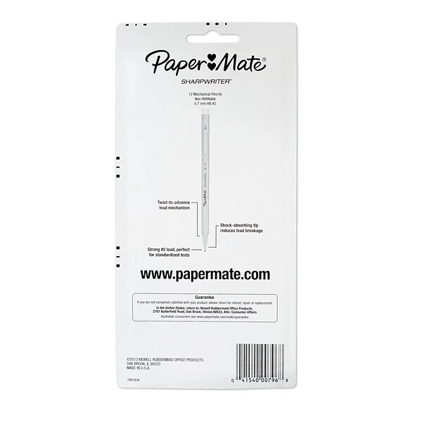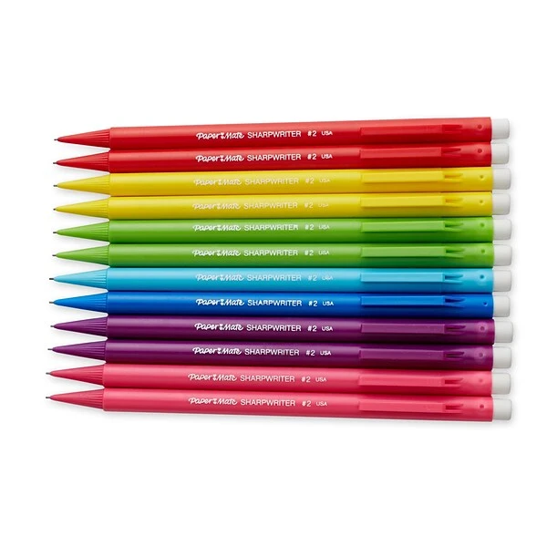 These Paper Mate Sharpwriter Colors Mechanical Pencils are economical and disposable. The Paper Mate mechanical pencils come with a cushion point that adjusts to writing pressure, leading to reduced breakage and a longer writing life for each mechanical pencil.