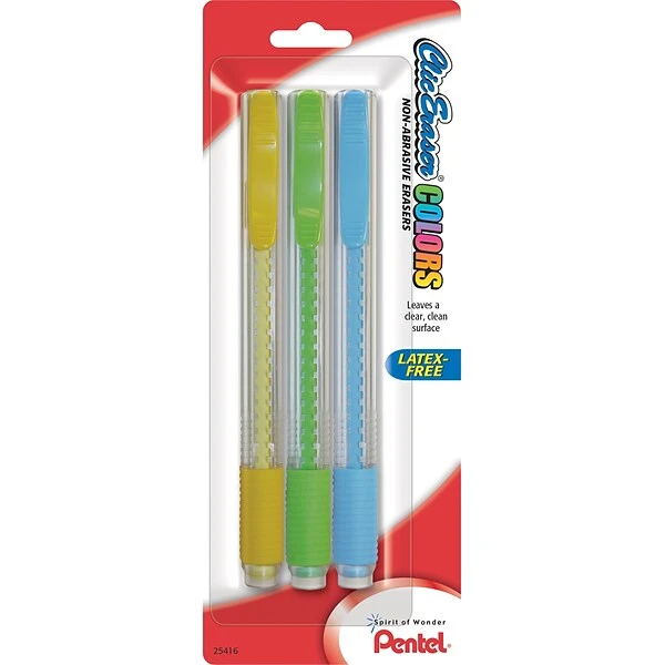- Pocket clip advances/retracts this long lasting eraser with a “clic”