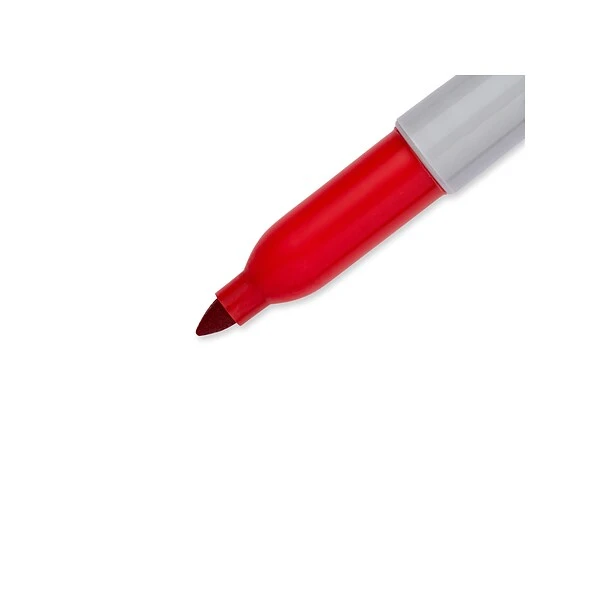Label boxes, files and envelopes with these fine-point permanent markers. The bright red color captures the eye, while the fine tips make it easy to write in small spaces. The permanent ink dries fast, preventing smudges and smears. This 12-pack of Sharpie fine-point permanent markers provides an ample supply to meet the needs of busy offices, classrooms and warehouses.