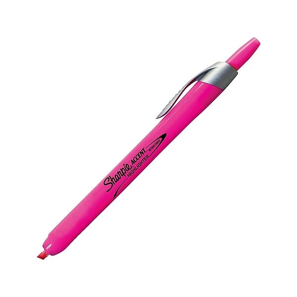 Draw attention to important information in notes, text, and documents with Sharpie Retractable Highlighters. The fluorescent pink color makes it easy to read highlighted text and emphasize important passages. Quick-drying ink helps prevent smudging when highlighting over pen and marker inks. And the retractable design prevents your highlighters from drying up and makes for easier storage.