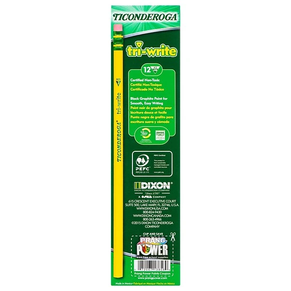 Complete assignments or record ideas with these yellow-barrel wood-cased pencils. High-quality erasers let you fix mistakes, and the soft graphite core is nontoxic and produces smooth lines. These triangular, ergonomic wood-cased pencils are easily grasped for comfortable, precise control while writing.
