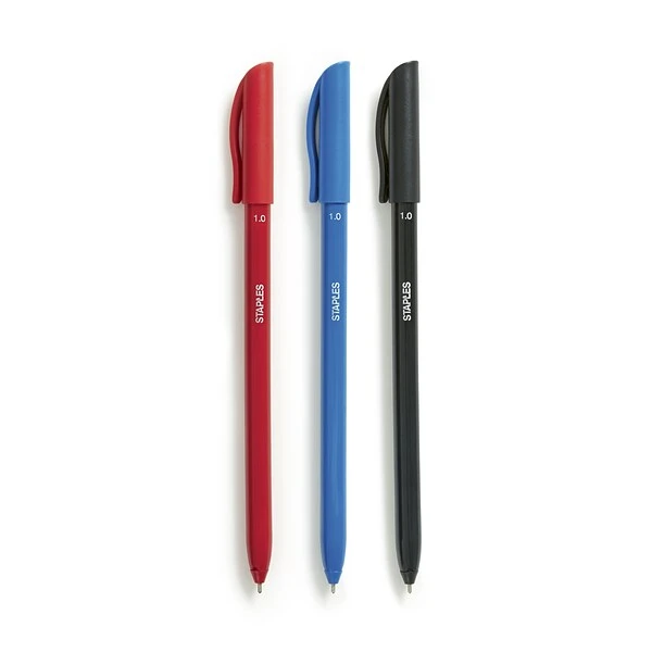 Keep your office stocked with this 60-pack of ballpoint pens. Black, blue and red inks allow you to choose the right pen for writing and editing documents, while medium tips help produce well-defined lines and clean writing. Each one of these TRU RED™ assorted medium-point ballpoint pens features a round barrel shape for all-day handling and writing comfort.