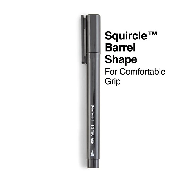 Take on artistic endeavors and work projects with these black markers. The black tip delivers a bold impression, while the quick-drying ink ensures your writing stays clear and smudge-free. The cap seamlessly blends in with the marker delivering a pleasant design, while the square outline of the marker keeps it from rolling when you set it down. These TRU RED™ permanent black markers come in a 12-pack, so you can make your mark at home, school and the office.