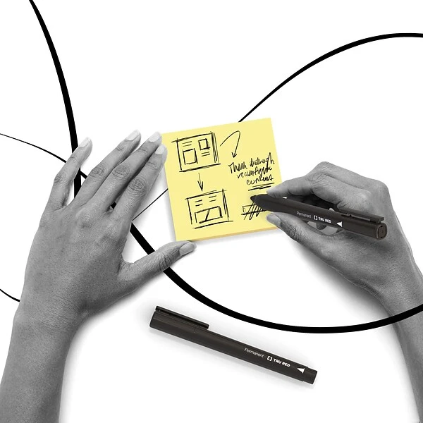 Make permanent, crisp marks on almost any surface with these permanent markers. Each marker features a fine tip that is ideal for greater control and accuracy as you write, while non-toxic permanent ink is safe to use in school, medical, and institutional settings. These TRU RED™ fine tip permanent markers have secure caps that lock firmly into place to prevent ink from drying out between uses.