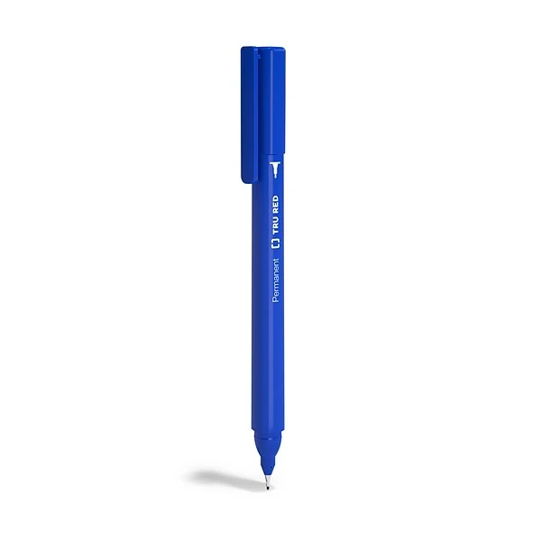 Write small, detailed labels and messages in indelible ink with these blue ultra-fine permanent markers. A low odor formula simplifies work on labeling and marking tasks in confined spaces, while an ultra-fine tip permits optimum performance when working with smaller materials. The pens in this 12-pack of TRU RED™ blue ultra-fine permanent markers come equipped with caps and clips for easy storage and handling.