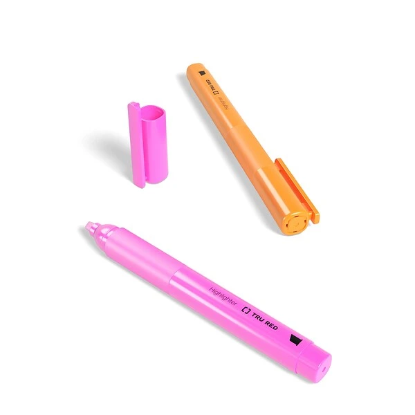 Draw attention to key facts and figures with these highlighters. Five fluorescent hues make it easy to color-code concepts by priority or category, and the brilliant ink resists fading for marks that last. Each of these TRU RED™ assorted chisel-tip highlighters features a rubberized grip, providing added comfort as you pour over reports, contracts, and other documents.