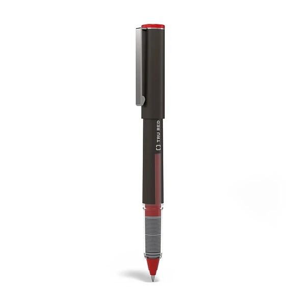 Fill up your pen cup with these assorted-color rollerball pens. The airplane-safe design ensures a leak-free travel experience, while the convenient ink level indicator lets you know when it’s time for a replacement. Get a professional upscale look from the matte finish and carbon steel clip. These TRU RED rollerball pens have a 0.5mm conical tip for clean, crisp lines and helpful color indicators for easy identification.