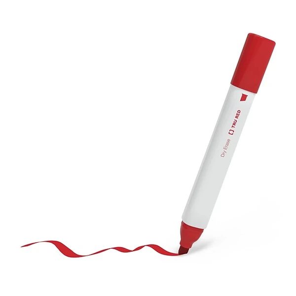 Create visually appealing presentations in meetings with these dry erase markers. Each marker in the pack features a chisel tip for making broad strokes and fine lines without changing markers mid-stream, while the tank-style barrel makes the marker easy to hold and use. These TRU RED™ assorted chisel tip dry erase tank markers rely on low odor ink, so even those with sensitivities are comfortable during long meetings.