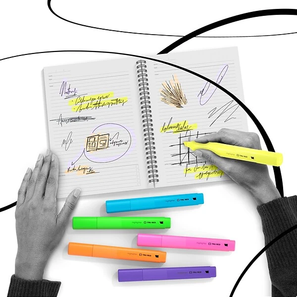 Mark the most important part of any printed page by using these tank highlighters with comfortable grips. A 300-meter writing life provides enough ink to tackle a large workload. Each highlighter in this 5-pack of yellow TRU RED™ tank highlighters features a chisel tip for improved versatility for broad strokes or finer lines.