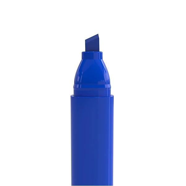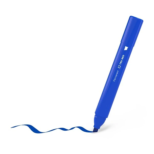 Infuse workplace or classroom projects with vibrant color when you use these blue permanent markers. The chisel tips create both fine lines and broad strokes for added versatility, and the vivid ink resists fading for a bold appearance. Boasting a square barrel design, these TRU RED™ blue chisel tip permanent markers sit perfectly in place on your desk without rolling away.