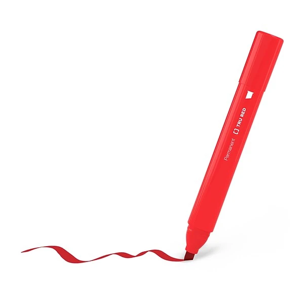 Call attention to notices, warnings, and other important information with these permanent tank markers. The bright red ink stands out on the page for increased visibility, and the chisel tips create bold strokes or fine lines for added versatility. Featuring a color-coded design, these TRU RED™ chisel tip red permanent tank markers are easy to locate in your pencil cup or desk drawer organizer.