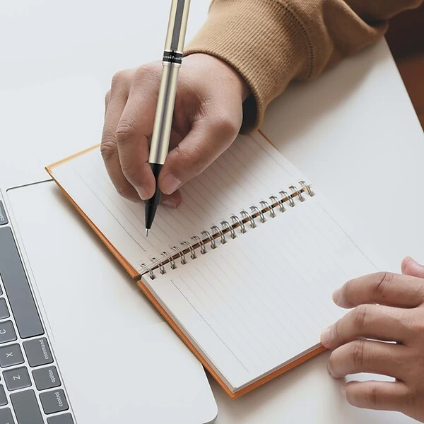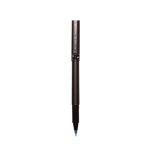 Sign off on daily checklists or draft business ledgers with these uni-ball Deluxe rollerball pens. The pens in this 12-count pack get their rich blue hue and smooth glide from fade-resistant, water-resistant Super Ink. Prevent unapproved document alterations by signing important documents with this innovative ink, which adheres to paper rather than lifting or smudging away easily. The brushed steel exterior of these uni-ball Deluxe rollerball pens projects a professional vibe, making them suitable for client meetings or customer gatherings.
