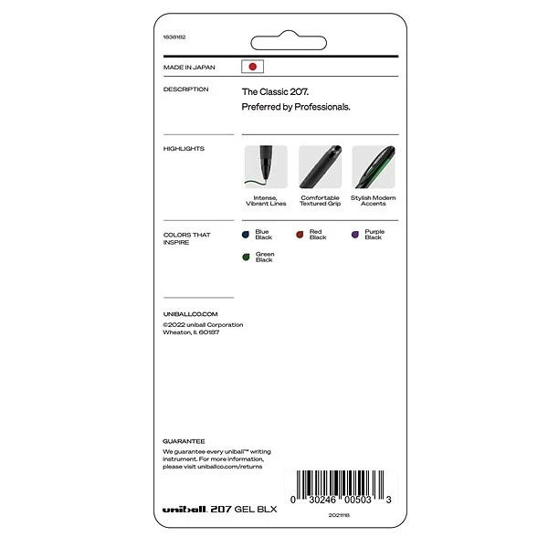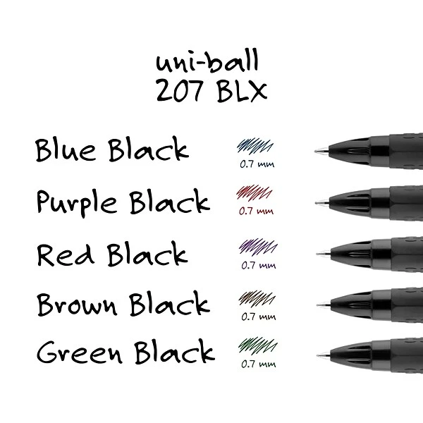 Give your writing a boldly infused flavor with 207 BLX Retractable Gel Pens from uniball featuring a 0.7mm medium point with a stainless steel tip that resists bending and breaking. Rich, pigmented gel ink color delivers an exceptionally smooth writing experience for intense, vibrant lines. Use these retractable gel pens for everyday writing tasks, note taking, list making and check signing , trusting its quick-drying uni Super Ink. Innovative uni Super Ink technology effectively entraps the gel ink into the paper, producing fraud, fade and water-resistant documents that resist check washing or bleaching. The 0.7mm medium point strikes the perfect balance between bold and detailed lines. A textured grip offers greater comfort and control as you continue writing, while a translucent ink window indicates the level of gel ink remaining, so you don’t run out unexpectedly. These retractable gel pens come in an assortment of black ink infused colors, adding an element of drama to your every day tasks and creative writing projects.