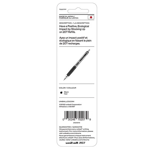 Stock your office, home or classroom with 207 Retractable Gel Pens from uniball featuring a 0.7mm medium point with a stainless steel tip that resists bending and breaking. Even-flowing, pigment-based gel ink delivers a smooth writing experience for intense, vibrant lines, ensuring that every mark is brilliantly communicated. Use these retractable gel pens for everyday writing tasks, check signing and all of your important signatures, trusting its quick-drying uni Super Ink. Innovative uni Super Ink technology effectively entraps the gel ink into the paper, producing fraud, fade and water-resistant documents that resist check washing or bleaching. The 0.7mm medium point strikes the perfect balance between bold and detailed lines. A textured grip offers greater comfort and control as you continue writing, while a translucent ink window indicates the level of gel ink remaining, so you don’t run out unexpectedly. The sleek design of the 207 with modern metal accents gives the retractable gel pen a stylish touch.