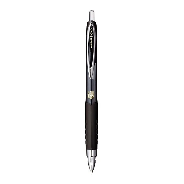 Stock your office, home or classroom with 207 Retractable Gel Pens from uniball featuring a 0.38mm ultra micro point with a stainless steel tip that resists bending and breaking. Even-flowing, pigment-based gel ink delivers a smooth writing experience for intense, vibrant lines, ensuring that every mark is brilliantly communicated. Use these retractable gel pens for everyday writing tasks, check signing and all of your important signatures, trusting its quick-drying uni Super Ink. Innovative uni Super Ink technology effectively entraps the gel ink into the paper, producing fraud, fade and water-resistant documents that resist check washing or bleaching. The 0.38mm ultra micro point produces neat and precise strokes for intricate writing, making it easy to create super fine details in your drawings and diagrams. A textured grip offers greater comfort and control as you continue writing, while a translucent ink window indicates the level of gel ink remaining, so you don’t run out unexpectedly. The sleek design of the 207 with modern metal accents gives the retractable gel pen a stylish touch.