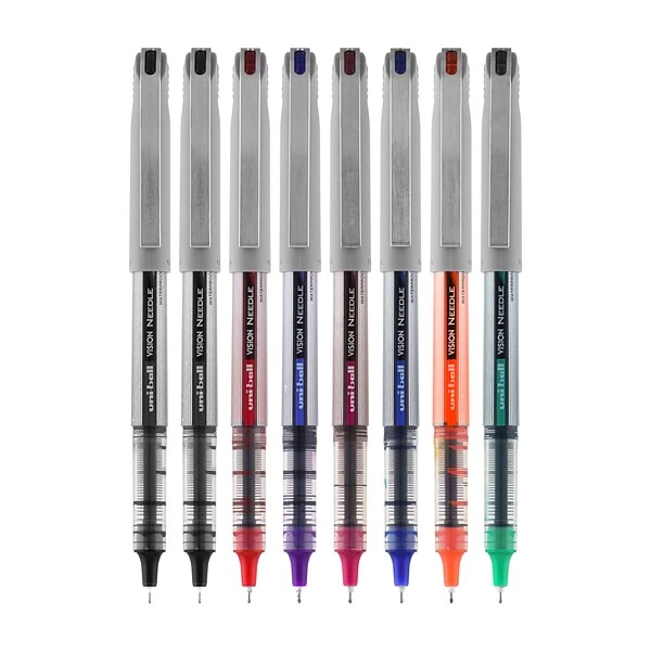 Stock your office, home or classroom with Vision Needle Stick Rollerball Pens from uniball featuring a strong, long lasting 0.7mm fine point. These needle point pens are designed with a bend resistant tip for better accuracy. Even-flowing, pigment-based roller ink delivers a smooth writing experience for reliably smooth, vivid lines and a rich color for improved clarity and readability. Use these fine point rollerball pens to create perfect letters, numbers and graphics. Innovative uni Super Ink technology effectively entraps the liquid ink into the paper, producing fraud, fade and water-resistant documents that resist check washing or bleaching. The 0.7mm fine needle point allows you to create ultra-precise, straight edge lines with ease. The exclusive Uni-Flow Ink System ensures a consistent, delightfully fluid writing experience, and a translucent window ensures that you don’t run out of ink unexpectedly. Enjoy beautiful clean lines and give all of your ideas a burst of brilliant color with this classic style fine point rollerball pen.