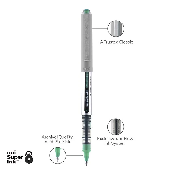 Uni-ball Uniball Vision Rollerball Pens, Fine Point, 0.7mm, Green Ink (60386)