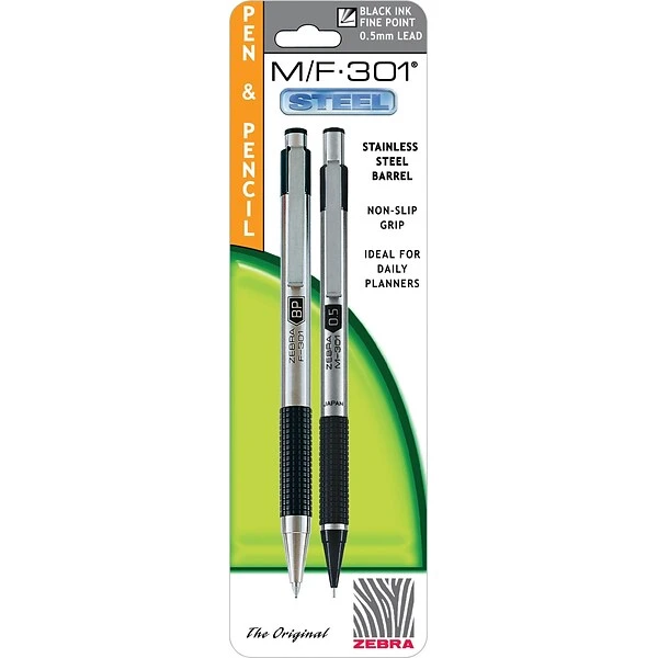 The F-301 Retractable Ballpoint is a perfectly portable steel pen with secure metal clip guarantees your pen will be there when you need it. The M-301 is a perfectly portable steel barrel mechanical pencil with secure metal clip guarantees your pencil will be there when you need it.