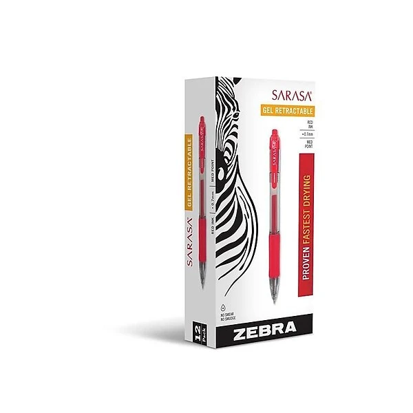 Brighten up notes by using these 0.7mm medium-point retractable red gel pens. The smooth gel ink provides rich, consistent lines, while the retractable design lets you store them away without creating unwanted marks. These Zebra Sarasa retractable red gel pens employ 0.7mm tips, so you can create sharp details, and with 12 pens per pack, staying stocked up is simple.