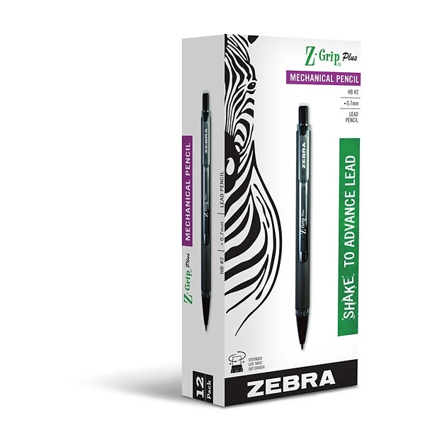 Z-Grip Plus Mechanical Pencil makes writing easy, comfortable, and fun! The Shake advance technology allows you to optimally advance your lead, minimizing the chance for breakage. With a long-lasting twist up eraser and a black satin matte soft touch barrel, you will keep reaching for Z-Grip® Plus time and time again.